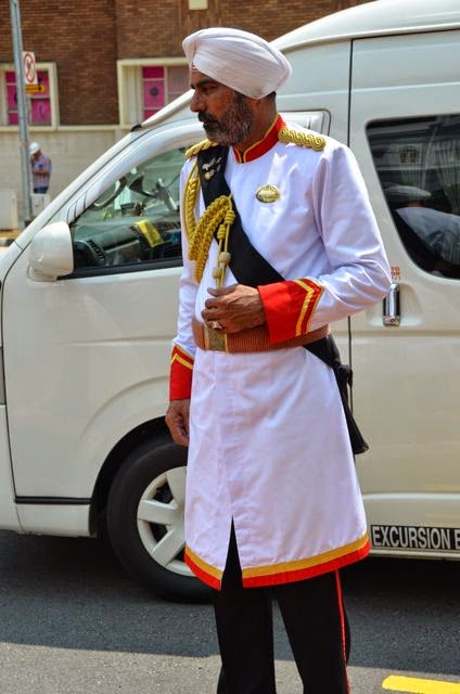 On with the day. We started in the trendy Clarke Quay area where there are many shops and restaurants and very nice to stroll around. We took in the sights here as we wandered towards Fort Canning Park, St. Andrews Cathedral, the iconic Raffles Hotel (home of the Singapore Sling) and over the Bugis Street where we ended up last night. A little shopping here as you can see Jan bought herself a new pair of shoes then it was back to the Metro for a quick look at the Botanical Gardens before heading back to the ship for a picturesque sail away.