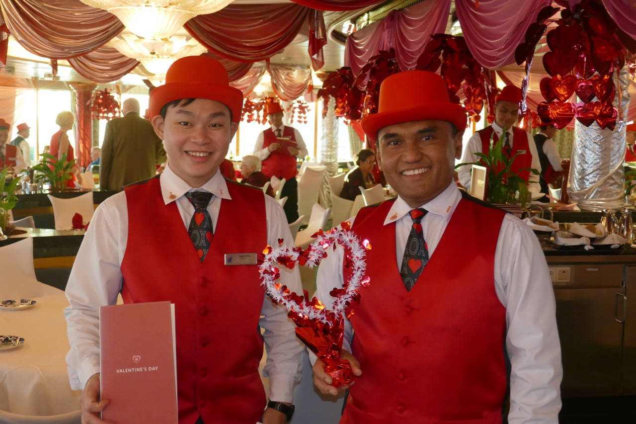 For us it was an easy port day with no tours or agenda, just get out in the beautiful weather and stretch our legs and this port was perfect for that as the waterfront boardwalk stretched some 5 or 6 kilometres that we took full advantage of. We strolled down as far as a beautiful big hotel which offered easy free wifi, perfect was able to get caught up some lingering internet stuff. We took some nice pics, some featuring the seals in this port as well as our ship up against the monstrous, Celebrity Eclipse as well some pics of the ice damage done to our hull (ice chips cut like glass shards) and finally our Valentine’s Day dinner with our beautifully decorated dining room. Wonderful day and great dinner. Hope you enjoy our few pics of the day…