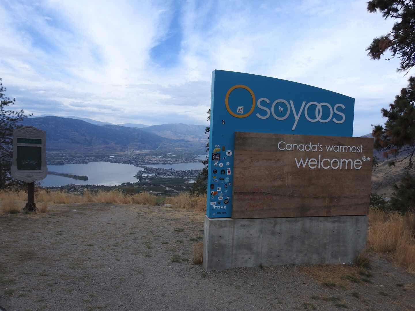 A very pleasant drive through Grand Forks, Rock Creek and Midway before gliding down the big hill to Osoyoos. We stopped at the Nk’Mip Winery for a great lunch and then checked out if they had any RV spots down by the Lake and yes they did. We are in spot 188, a great location with the water rippling at the RV’s edge. The initial reaction was to back the RV so the back end would hover over the water but looking at a rig a few spots down we found that by leaving some room allowed us to have our chairs at the back of the RV steps from the water, a good call. Wind down the rest of the afternoon here with great wifi and many amenities all close by. Looking forward to walking the campground tomorrow. We decided on two nights here, yeah.