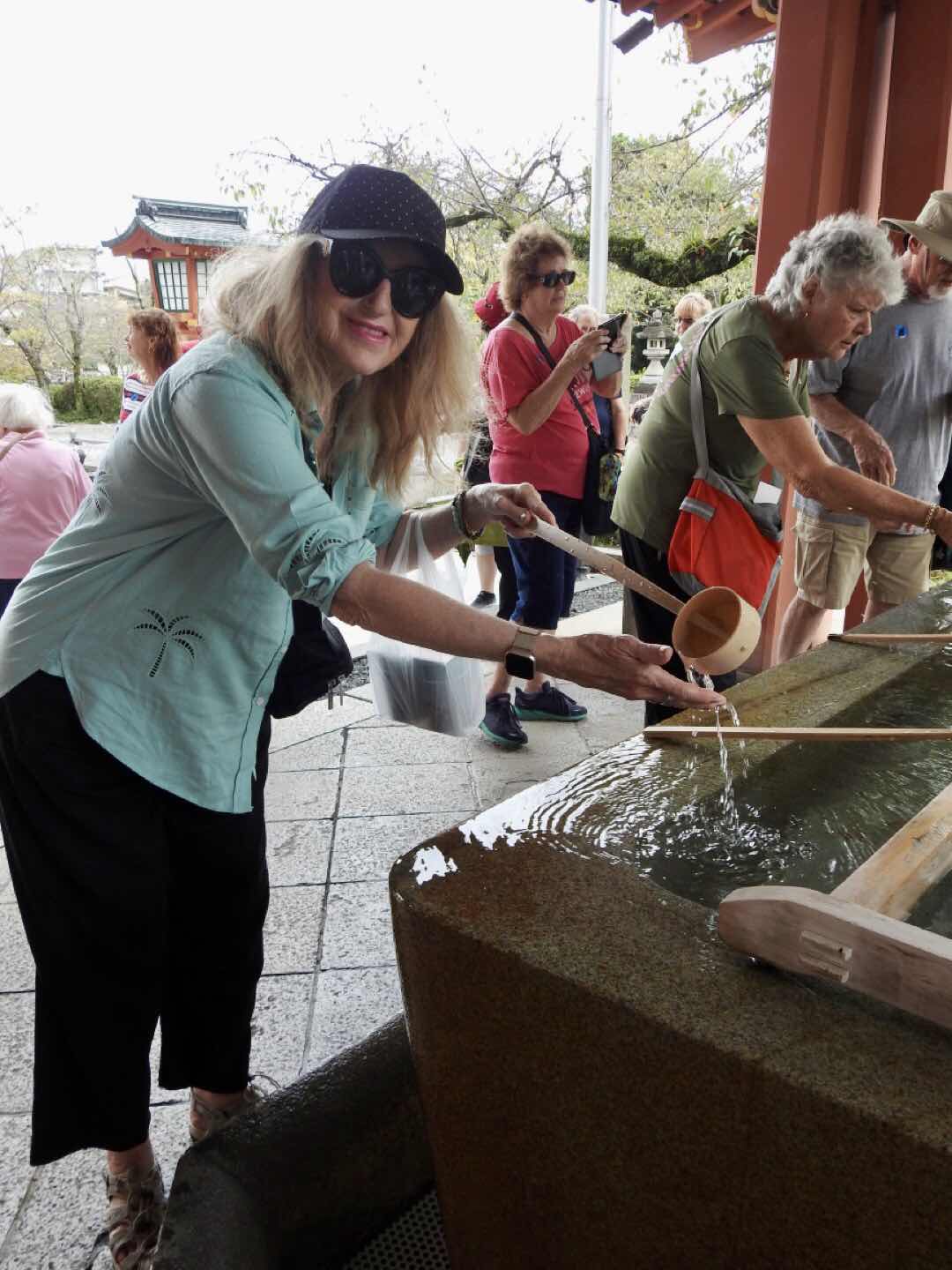 Our captain had a difficult time docking the Westerdam this morning. Very high gusting winds caused him to leave port and wait about a half an hour before coming back in and trying again. He really did not want us to have abandon this stop but he was close. In the end he was able to tie up but had to leave both the bow and stern thrusters on to keep us safely docked. This delay led to a bit of confusion in the World Stage where the tours meet, yes we had a tour booked for this morning. It all worked out in the end but I could see that there were some unhappy guests and in cases this would be understandable. The excursion people need to communicate better when something like this happens as people were coming in from different doors so there was no consistent line. Anyway we move on because for us this did not really effect us, we got scanned, stickered and out within about 15 minutes. We took the tour to get as close to the elusive Mount Fuji as possible. I say elusive as Mt Fuji was shy today or at least that is how our wonderful guide Hiro put it. Our tour read as follows: