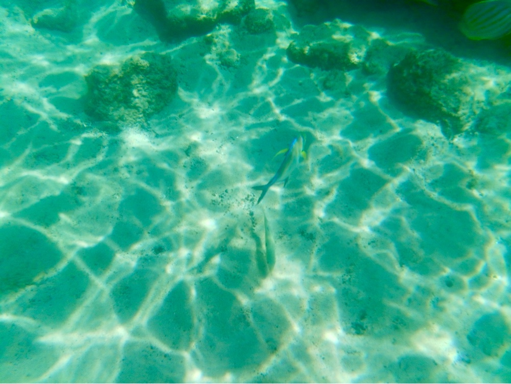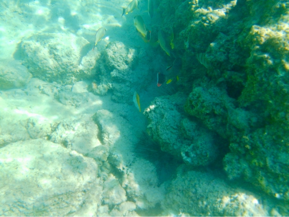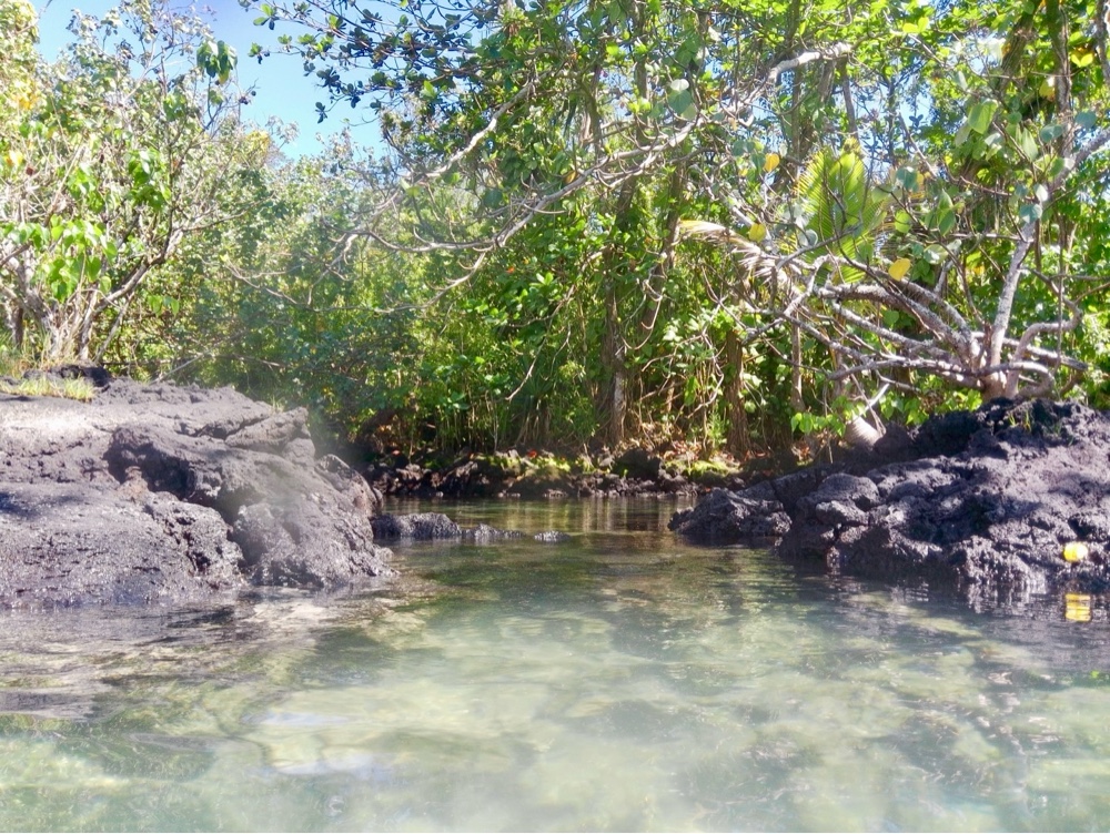 The water here is a mix of warm ocean currents and refreshing cool spots, thanks to a freshwater spring that feeds into the lagoon. The snorkeling isn’t world-class, but it’s quite good—especially close to the easy-access stairs. On this sunny Saturday, the park was alive with locals enjoying picnics and parties, including a lively children’s birthday celebration.