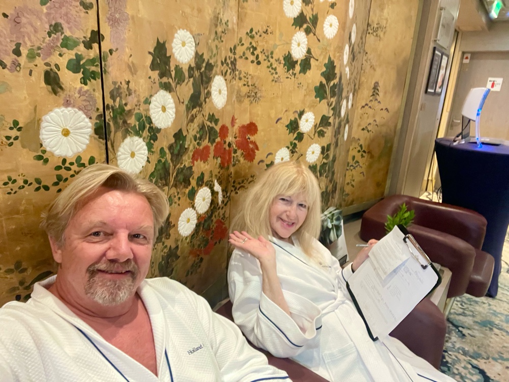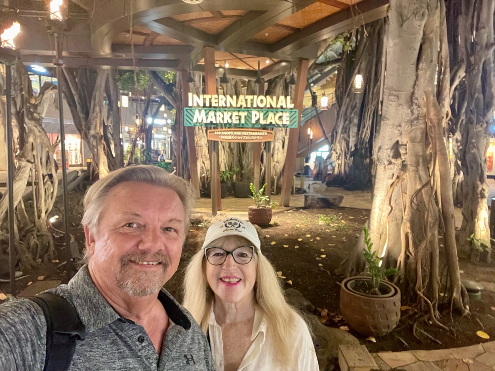 With the morning free and the ship as our floating resort, we treated ourselves to a 75-minute couple’s hot stone massage—pure bliss. Completely relaxed, we stepped off the ship and strolled just a few blocks to catch the #20 bus, which carried us toward the iconic energy of Waikiki Beach.