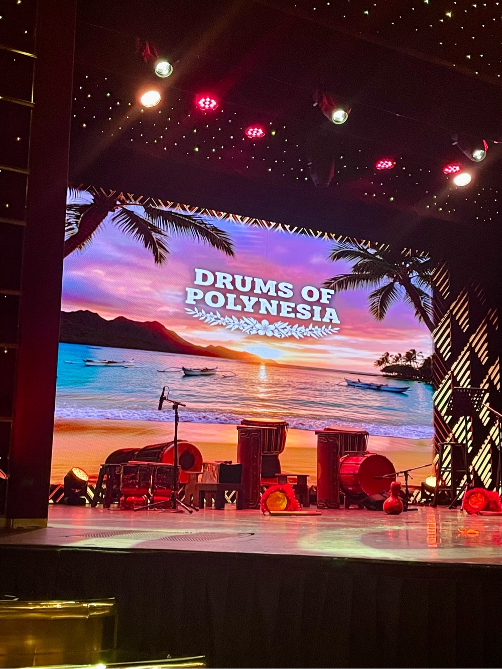 Before returning to the ship, we fit in a bit of retail therapy and a Waikiki walkabout, watching the sunset paint the sky before heading back for one more treat—the Drums of Polynesia performance on board. This dynamic show features dance and music from across the South Pacific, beautifully capturing the heart and rhythm of Polynesian cultures. Energetic, heartfelt, and utterly entertaining.