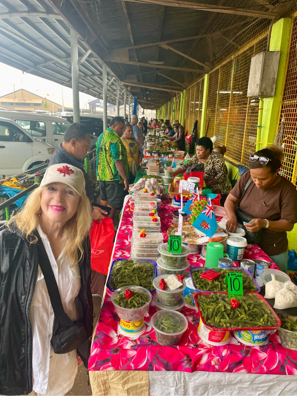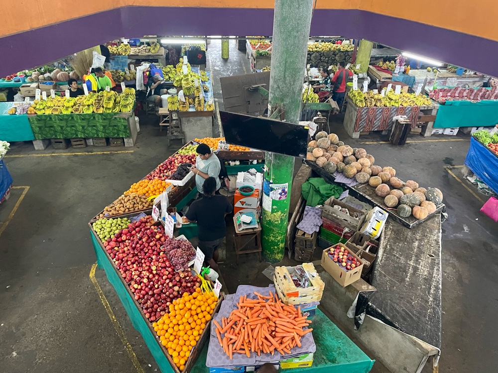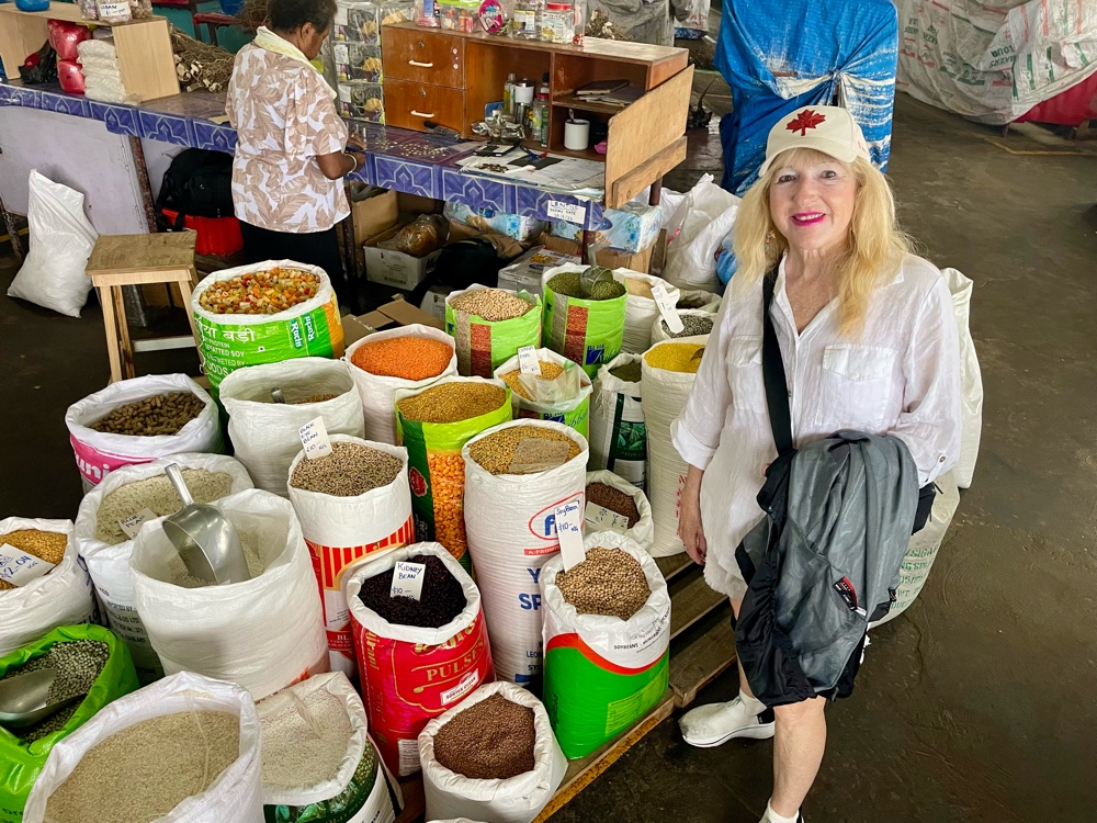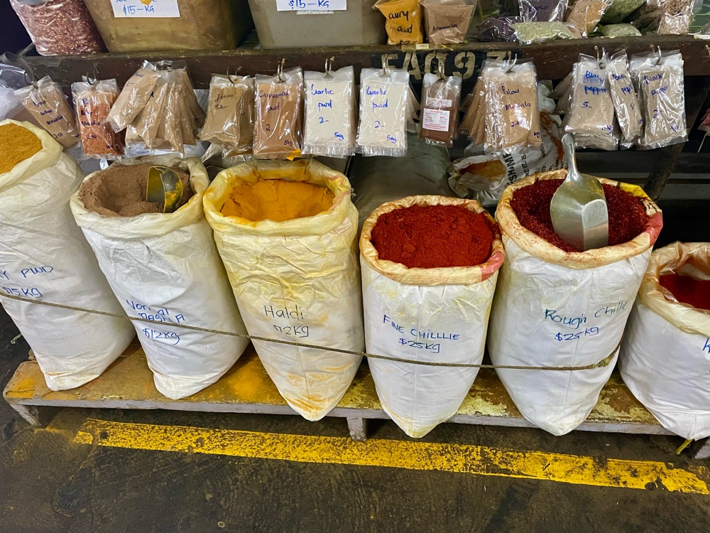 We started off optimistically, walking through Suva’s excellent municipal market, one of our favorites in the South Pacific. It’s always a feast for the senses—bright tropical fruits stacked in colorful pyramids, vendors selling bundles of leafy greens, cassava, and taro, and the air filled with the spicy aroma of dried chilies and herbs from the upstairs spice and Kava section.