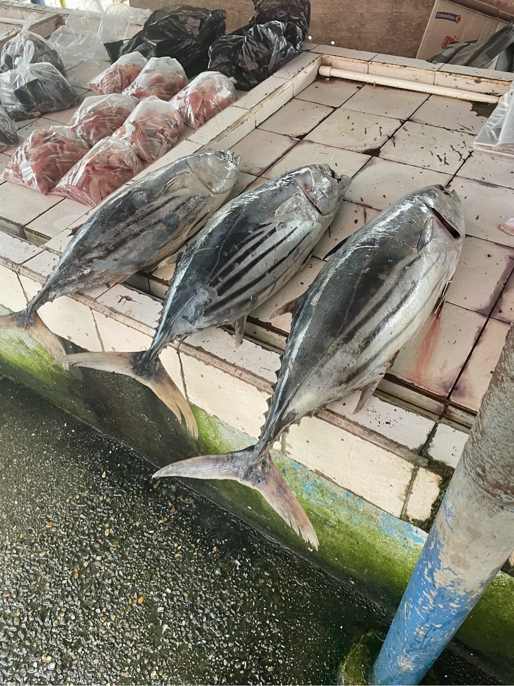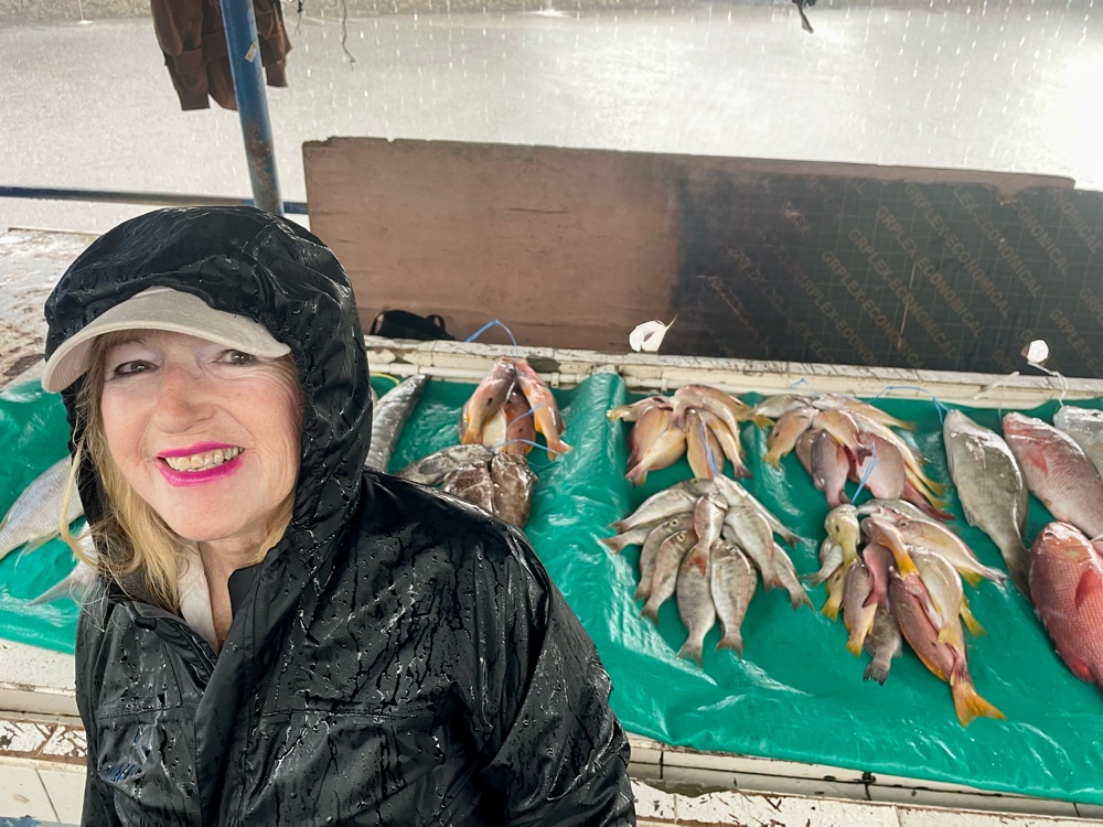 What began as a light drizzle quickly turned into a torrential downpour, one of those “wait five minutes and it’ll pass” showers that just keeps building and building. Before long, the rain was coming down in sheets, drumming on the tin roofs of the market. We managed a quick detour through the fish market, but by the time we were ready to make our way to Thurston Park, the deluge convinced us to call it a day.