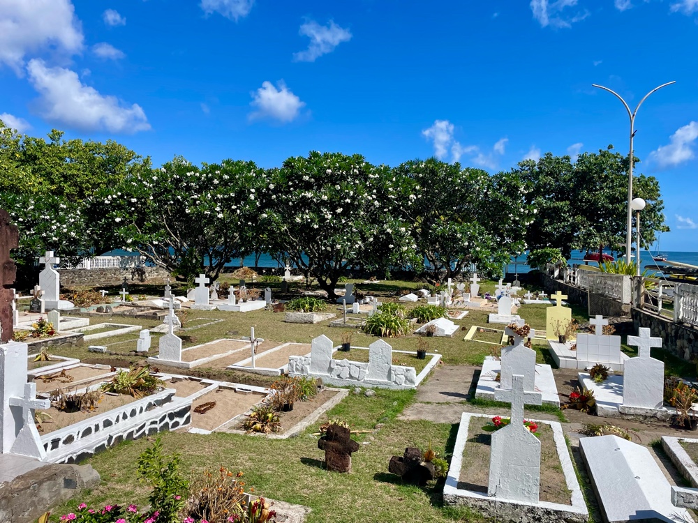 We also visited the cemetery and then stopped in at the small museum that holds a special place in our memories. It was originally curated by Rose, a wonderful woman who welcomed visitors with warmth and a genuine passion for sharing her island’s culture. Sadly, we learned that Rose has since passed away, though a touching photo of her in her later years now hangs inside. The new caretaker is equally friendly but speaks only limited English. It warmed our hearts to see Rose’s name still proudly displayed on the museum sign — a fitting tribute. (For anyone looking for it, the museum is in the house directly in front of the sign.)