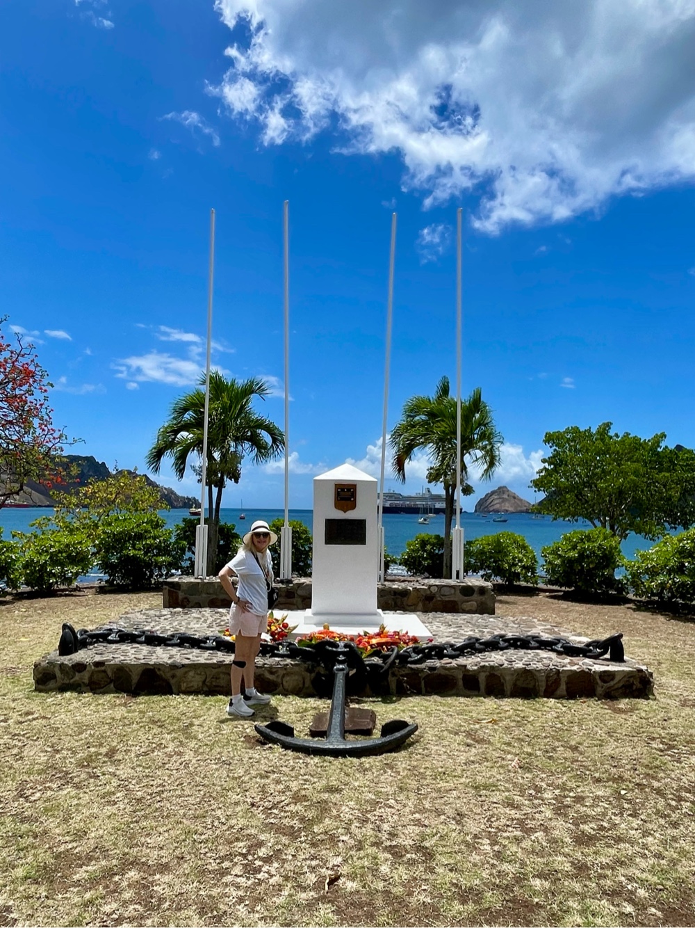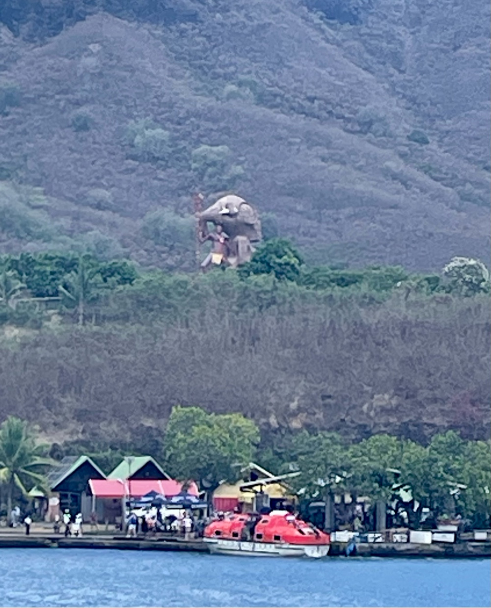 Interestingly, for the first time, the port information sheet mentioned a swimming beach about three-quarters of a mile to the right of the tender pier. This was curious given the ship’s morning announcement cautioning guests not to swim at the beach immediately to the left of the tender port — apparently, the sharks in this bay are not the “friendly” kind we’d met at earlier islands! Which raises the question: how exactly do the sharks know to stay on one side of the harbor? Is there a sign in the water they politely obey? (lol) I’m not sure anyone actually tested that theory.