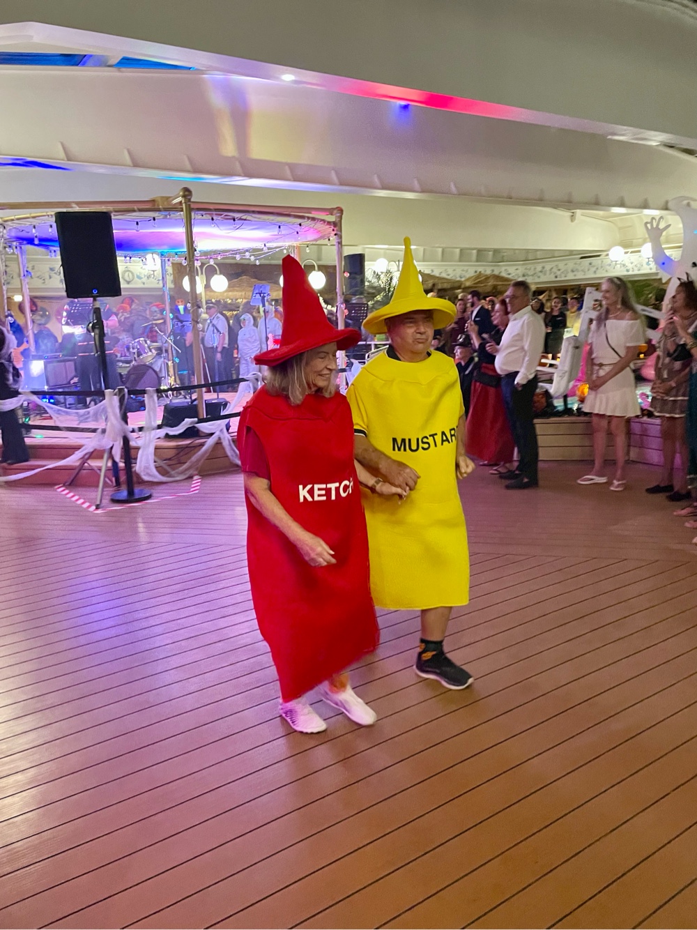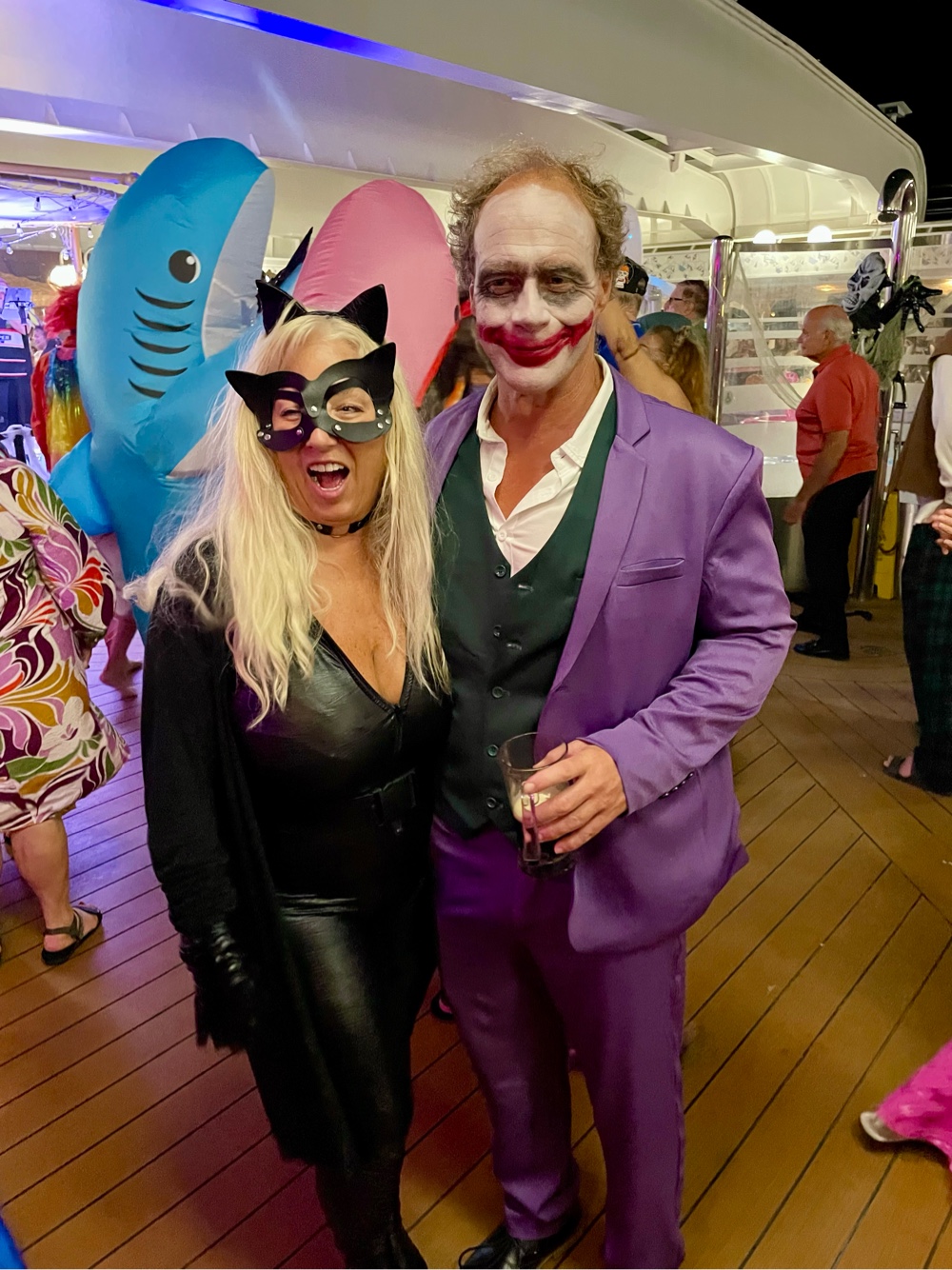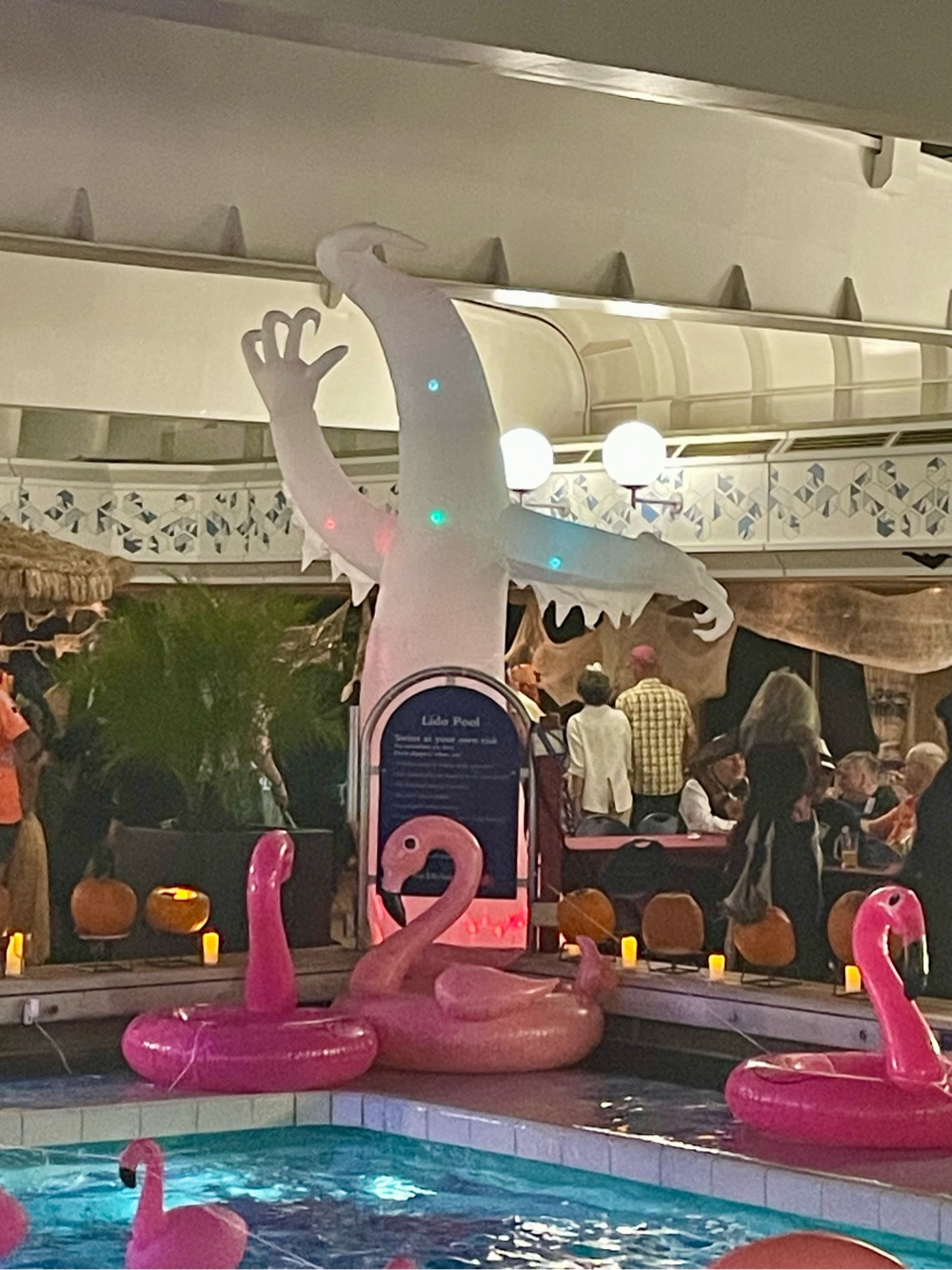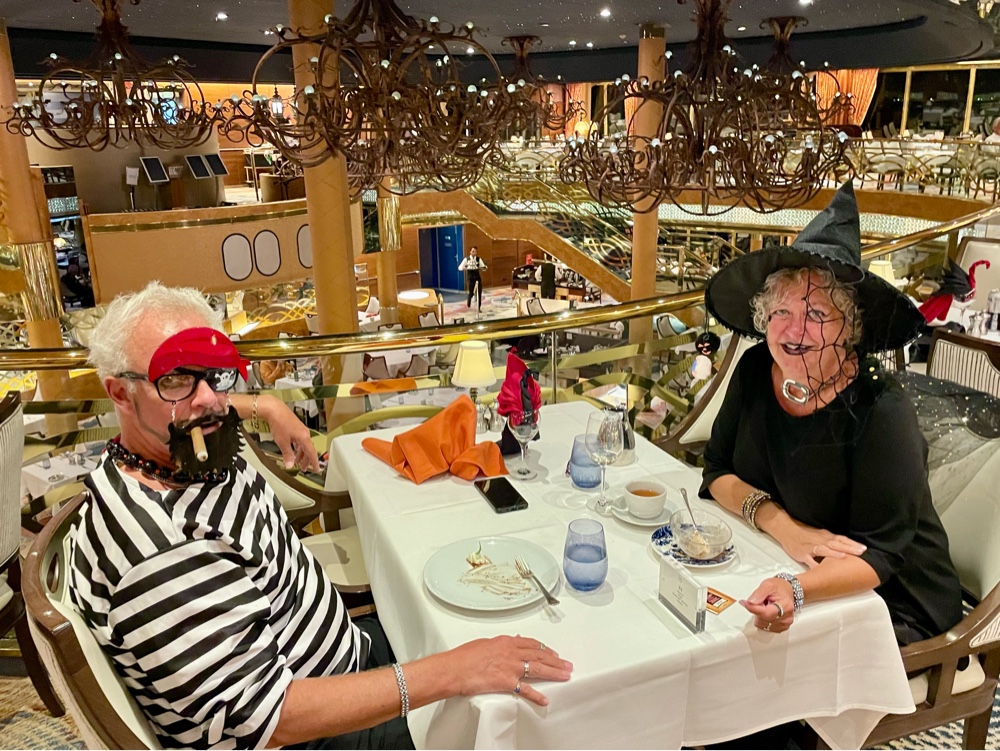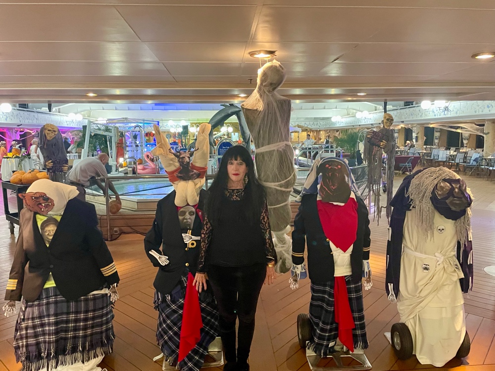 By the time Halloween night rolled around, the ship had transformed. The Lido deck became a floating festival of lights, cobwebs, costumes, and music — easily one of the best-decorated parties we’ve seen at sea. The crew went all in, and the guests matched their energy perfectly. Everywhere you looked, there were pirates, witches, superheroes, and sea creatures dancing under the stars.