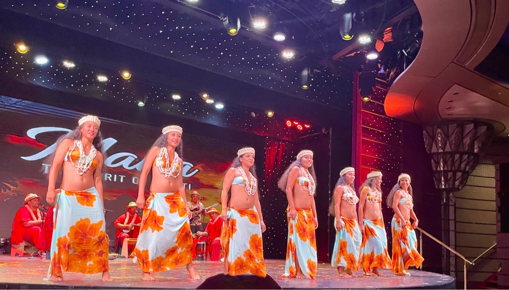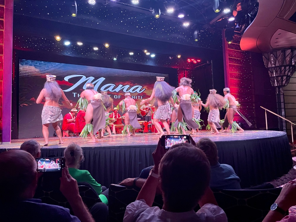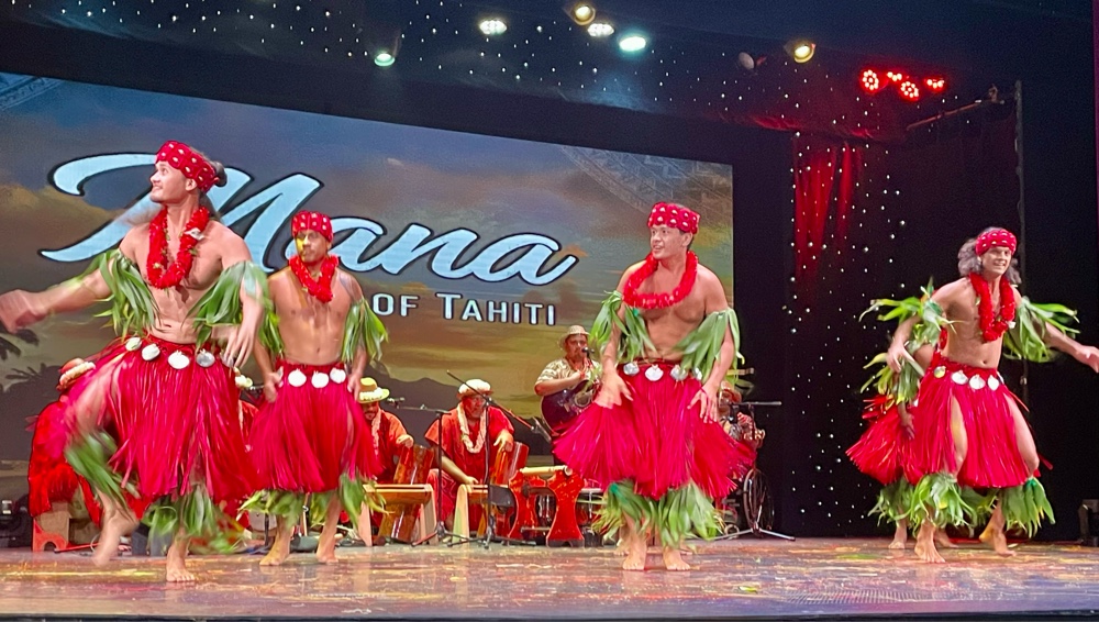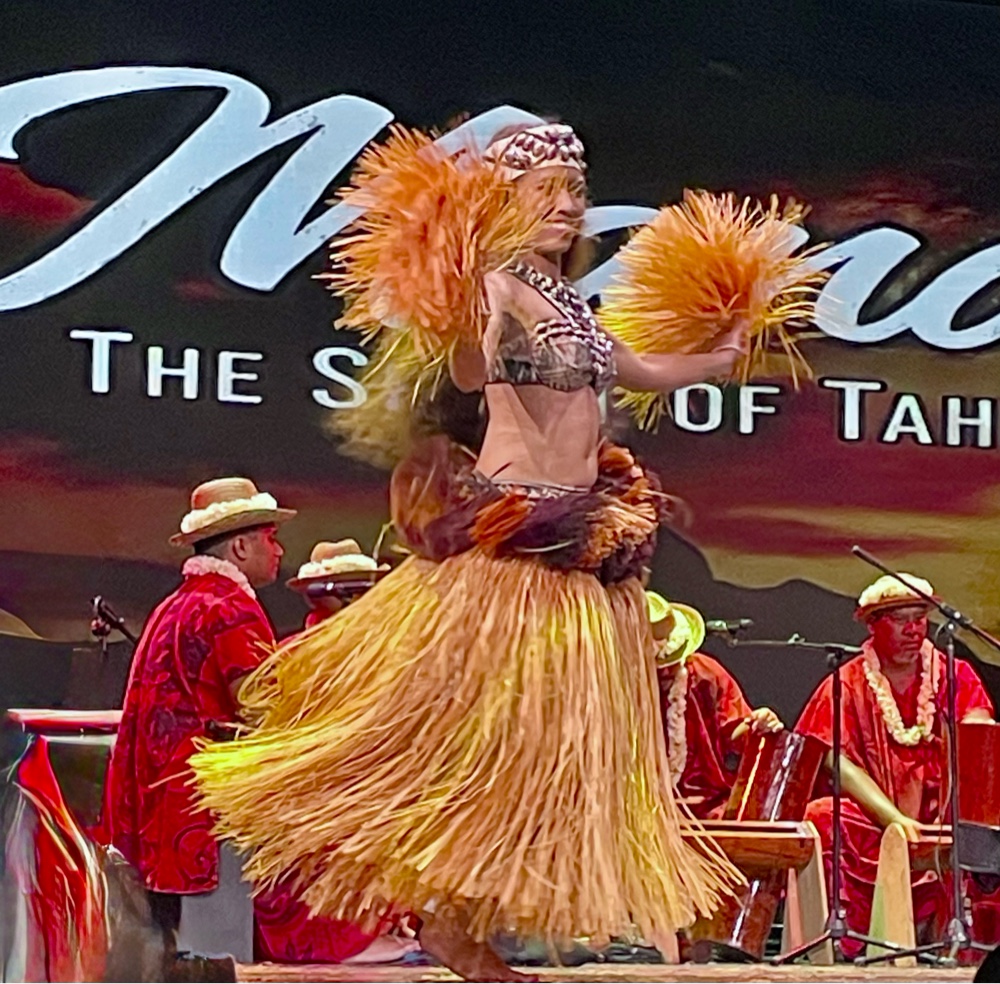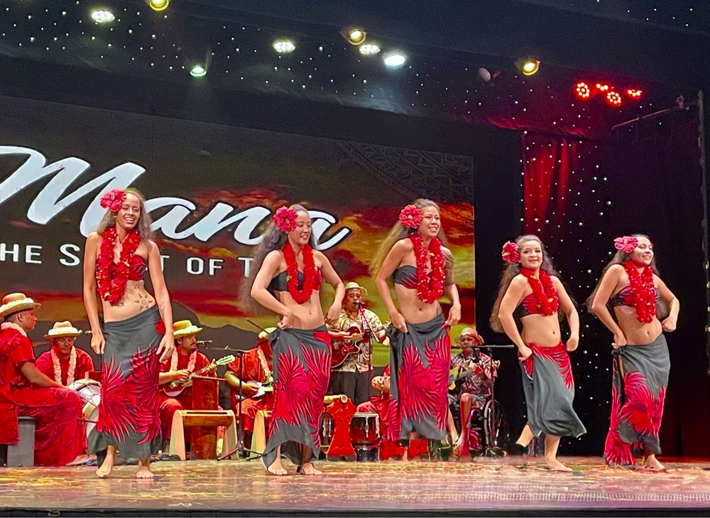For us, the real highlights of Papeete are the simple things — walking the waterfront, exploring the local shops, enjoying the incredible sunsets, and of course, the evening performances. One of our favourites, the local group Mana – The Spirit of Tahiti, once again came aboard to perform. Their show just keeps getting better each time — vibrant dancing, powerful drumming, and the most stunning costumes adorned with shells and feathers. It’s one of those performances that perfectly captures the pride and beauty of Tahitian culture.