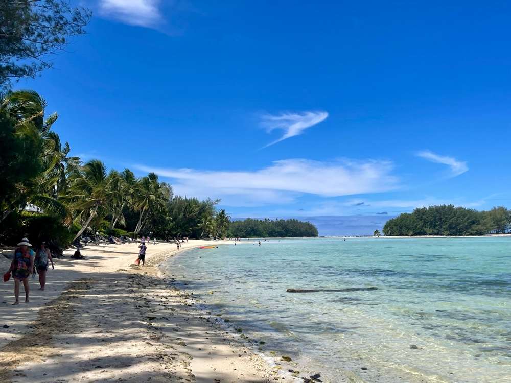 Our first visit years ago, we rented bikes and rode the full loop counterclockwise — a fun challenge with incredible scenery the entire way. The second time, we hopped on one of the local buses and spent a wonderful, lazy day at Muri Beach and Lagoon.