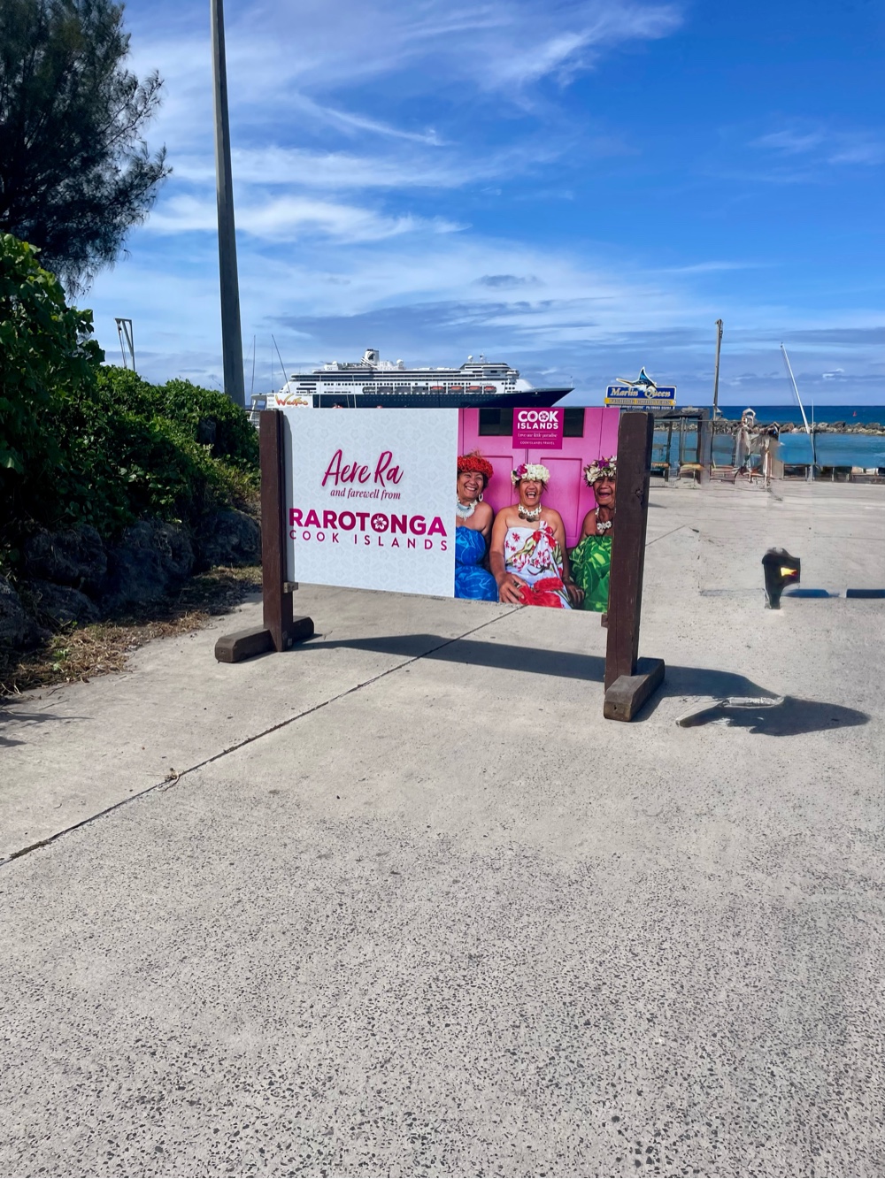 Rarotonga is what many cruisers call a “weather-dependent port.” There’s no deep-water pier for large ships, so passengers must tender ashore — and that can be tricky. If the ocean swells are too high, it’s just not safe to run the tenders. Out of our four visits, we’ve successfully landed three times, including today.